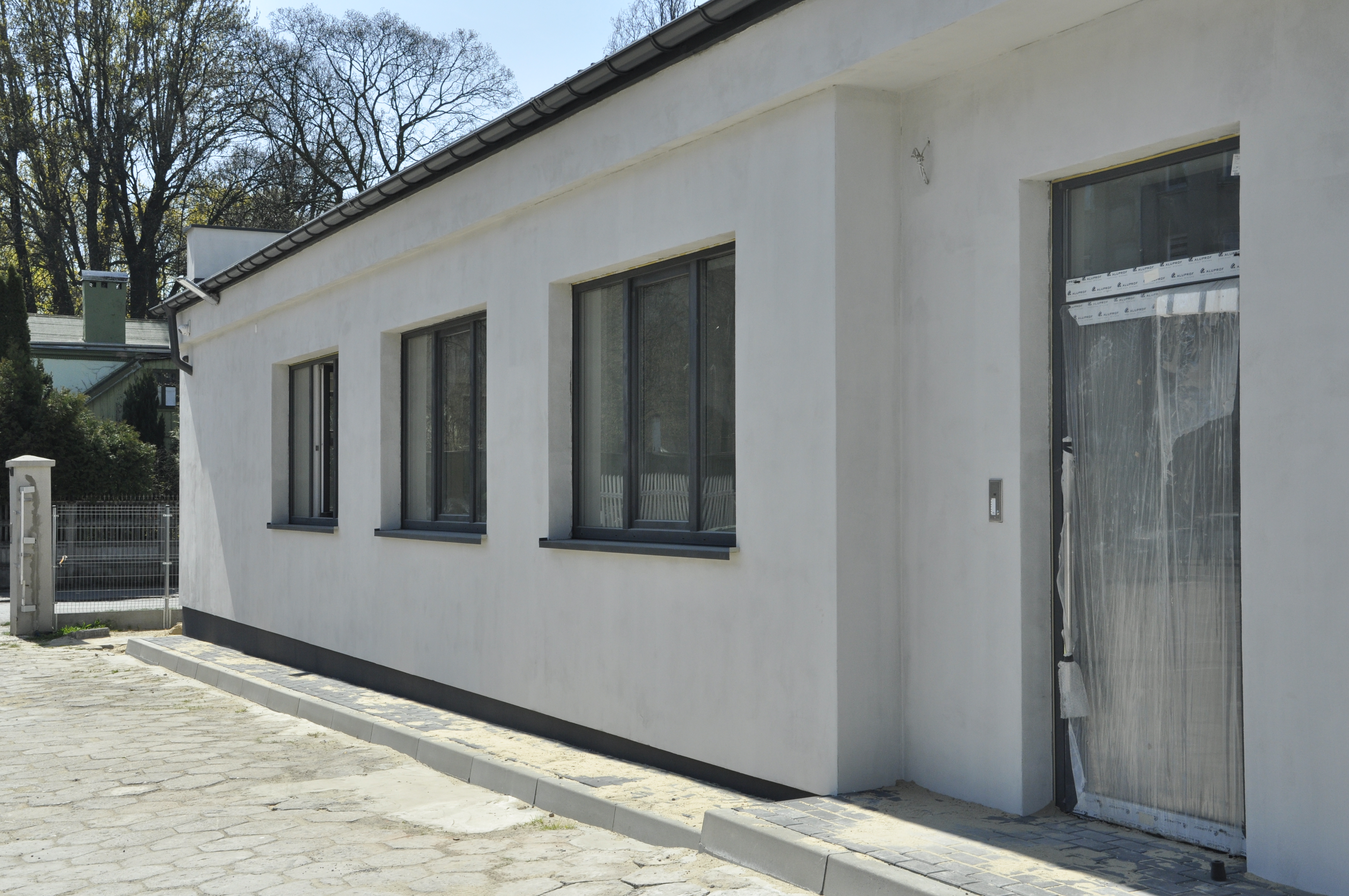 Parking: ogrodzony parking z dwoma bramami wjazdowymi, parking dla rowerów.